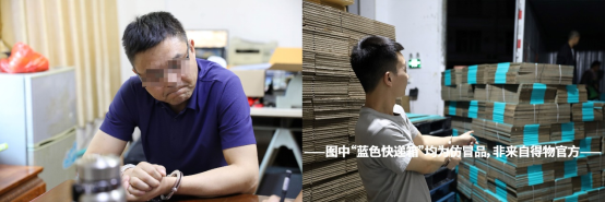 据悉,本次被捣毁的6个福建某地制假窝点,都是以违法生产仿冒“得物包装”为主体业务,嫌疑犯在未取得得物授权的情况下,在空白纸箱上印制得物标识和“极光蓝”色,仿制“得物包装”出售获利。仿冒包装成批量售往当地,还有少量售往外地的假货商。